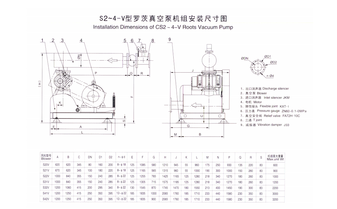 | S系列羅茨鼓風(fēng)機(jī)性能表 Performance Table of Series S Roots Blowers | ||||||||||||||||||||||||||||||