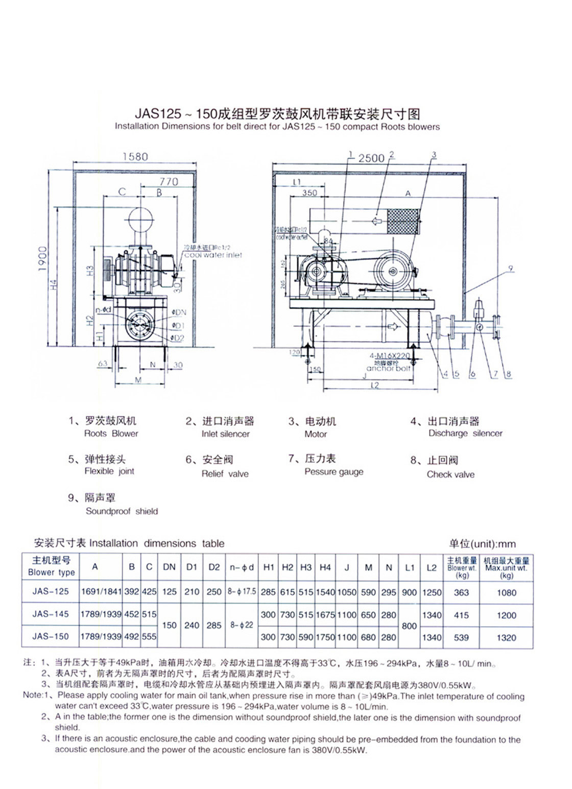 | JAS系列羅茨鼓風機性能表 Performance table of Series JAS Roots Blowers 表1 | |||||||||||||||||||||||||||||||||